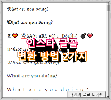 위와 같은 특수한 인스타 글씨체는 총 2가지 사이트를 통해 간단하게 인스타 글씨체 변환을 이용할 수 있습니다.