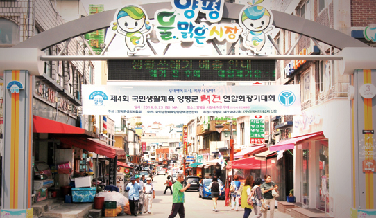 양평시장에는 음식과 문화 뿐만이 아니라 재미있는 벽화로도 손님들을 맞이하는 장소이다.