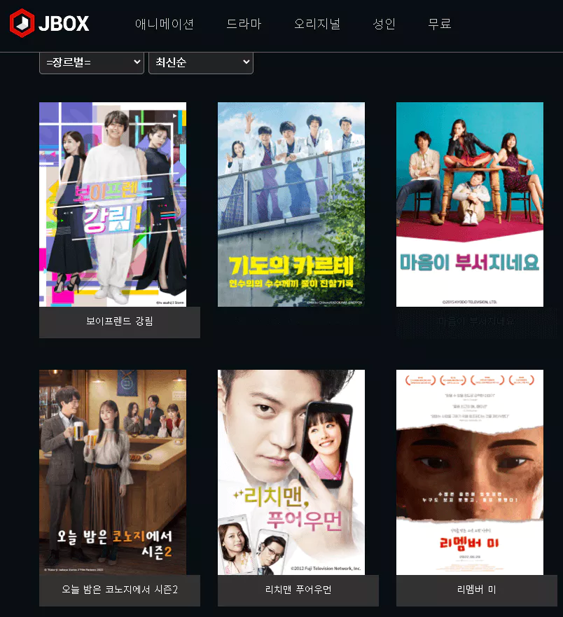 일본 문화 콘텐츠(애니, 드라마)를 제공하는 스트리밍 서비스 홈페이지 제이박스는 '대원미디어' 계열의 애니메이션 전문 케이블 방송국이지만 일본 드라마도 볼 수 있습니다.