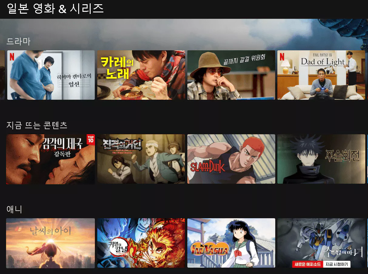 넷플릭스에서는 일본 영화&시리즈를 통해 일본 드라마와 영화를 시청할 수 있도록 제공하고 있어 국내에서 편리하게 일드를 즐겨볼 수 있습니다.