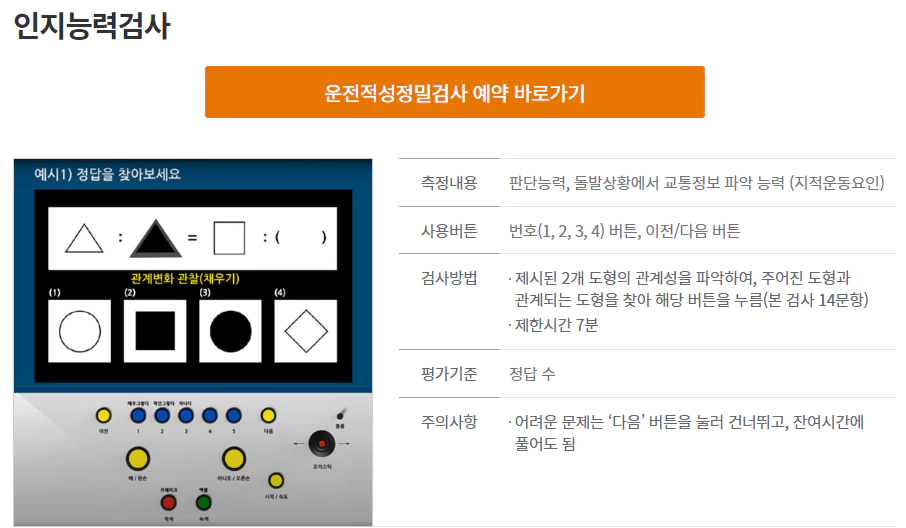 운전적성정밀검사는 한국교통안전공단 홈페이지에서 무료로 받을 수 있지만 예약 후 인근 검사소에서 시험을 쳐야 하는 번거로움이 있습니다.