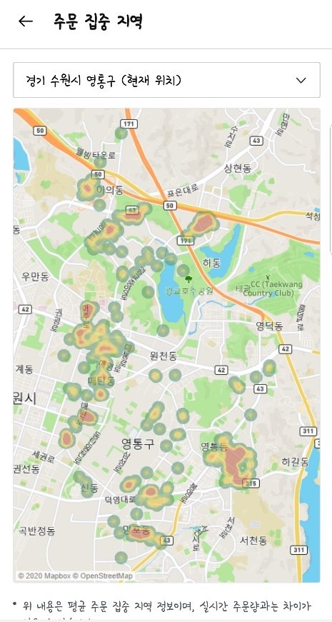 주문예상지역에 들어가보시면 사진과 같이 주문량이 많은 지역을 파악할 수 있고, 본인이 살고 있는 곳이 주문량이 얼마나 많은 가를 파악할 수 있습니다.