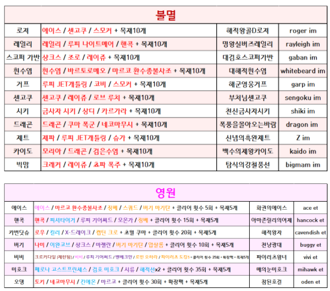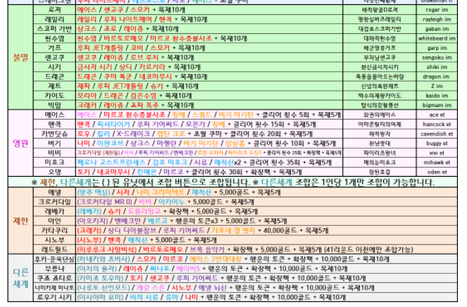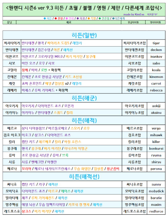 원랜디9.3 히든조합표