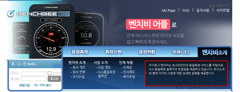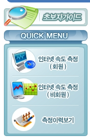 벤치비 사이트의 경우 회원가입하여 이용하실수도 있지만 퀵메뉴에서 비회원으로도 바로 인터넷 속도 측정을 이용하실 수 있습니다.