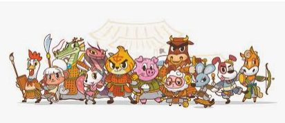 순서대로 쥐,소,호랑이,토끼,용,뱀,말,양,원숭이,닭,개,돼지로 총 12마리의 동물들이 상징하고 있다.