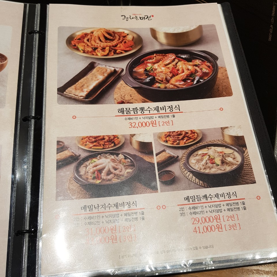 이외에도 광화문미진에는 다양한 메뉴들로 구성되어 있는데요, 낙지해물뚝배기, 해물짬뽕수제비정식,메밀낙지수제비정식,낙지짬뽕,돈까스,육전,메밀전병,낙지메밀정식,낙삼메밀정식,낙지덮밥 등이 있습니다.