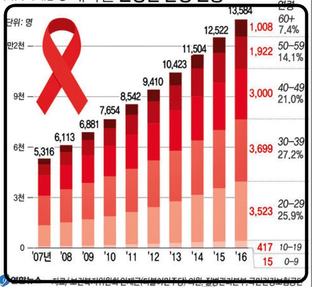 군내에서는 매년 1만명대 정도가 에이즈 확진 판정을 받고 있어 초기증상을 파악하는 것이 중요하다고 볼 수 있습니다.