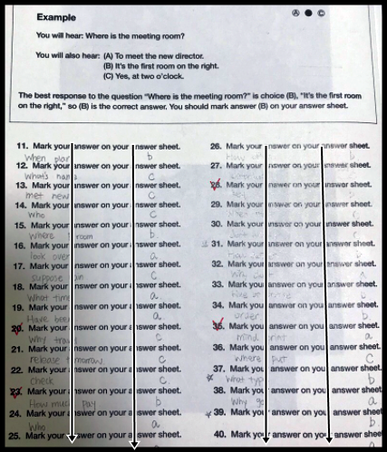 4.재풀이해서 틀린 문제는 핵심 문장을 손으로 직접 적는다.(파트3,4는 마찬가지로 전 지문을 적는다.)