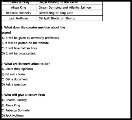 또한 세 문제의 순서에 따라 듣기에서 차례대로 핵심 문장이 출제되기 때문에 순서대로 들어가면서 풀어가주시면 된답니다.