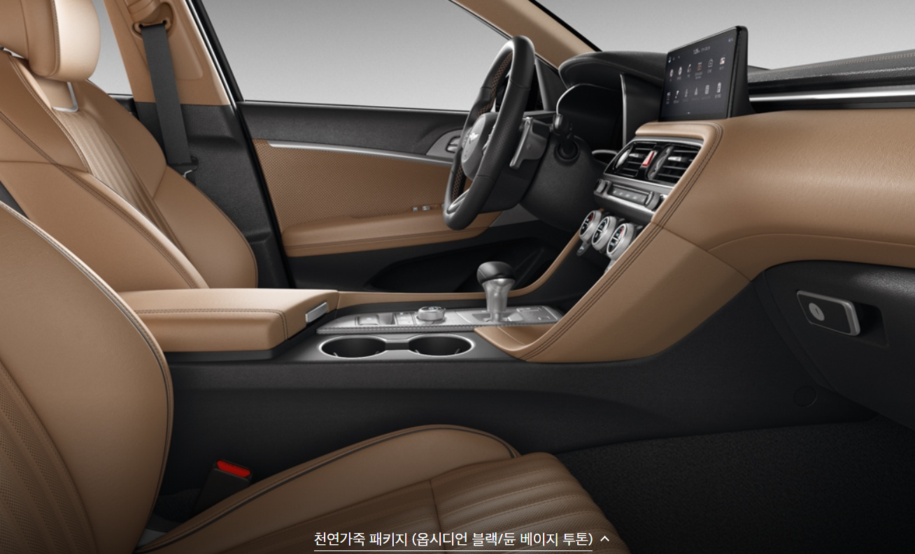 내장디자인은 대부분 추가금 90만원을 추시고 옵시디언 블랙/듄 베이지 투톤으로 선택을 하시게 되는데요, 천연가죽패키지만 선택하셔도 제네시스 G70이 몇 배는 더 고급스러워 보이는 효과를 받을 수 있답니다.