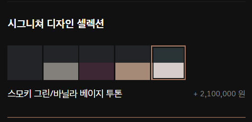 시그니쳐 디자인 컬렉션을 하면 다이아몬드 패턴 가죽이 새겨져 보기엔 더욱 이쁜 효과를 얻을 수 있지만 굳이 210만원까지 추가하며 넣어줄만한 디자인은 아니라고 생각합니다.