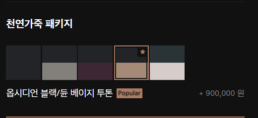 천연가죽 패키지(90만원) 파풀러패키지(380만원)
