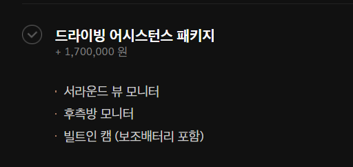 가장 많이 선택하는 옵션을 모아둔 것으로 운전에 가장 많은 도움을 주는 패키지를 모아두었습니다.