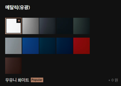 매트 화이트부터 블랙까지 추가금 70만원을 추가하면 매트색상으로 변경할 수 있습니다.