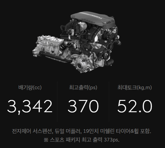 제네시스 G70에서 가장 인기있는 가솔린 3.3터보입니다. 젊은 세대들을 공략하고, 젊은 세대들이 중요시하는 차량이 시원하게 치고 나가는 힘, 최대토크가 52kg.m까지 치고 나가는 파워트레인 엔진입니다. 가격은 + 560만원입니다.