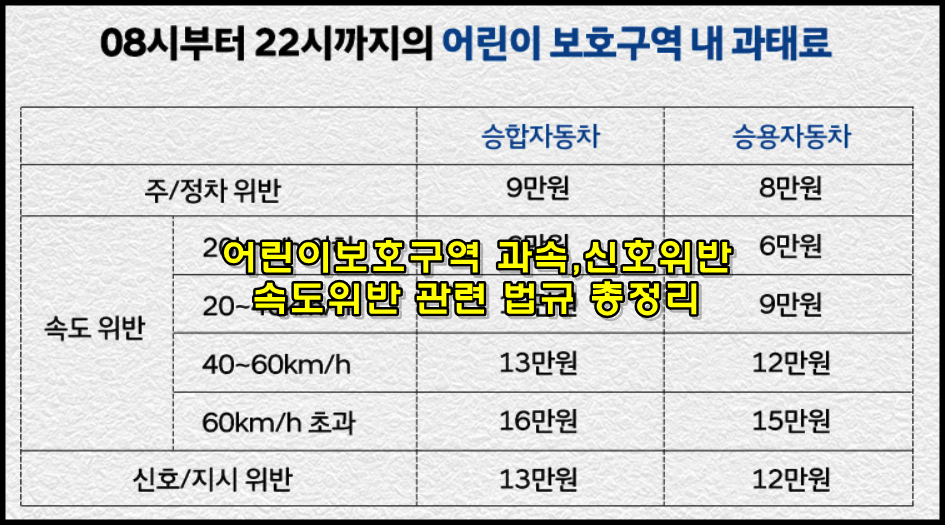 이러한 어린이 보호구역에서의 과속 및 신호위반이나 속도위반 시 관련 법규를 알아보도록 하겠습니다.