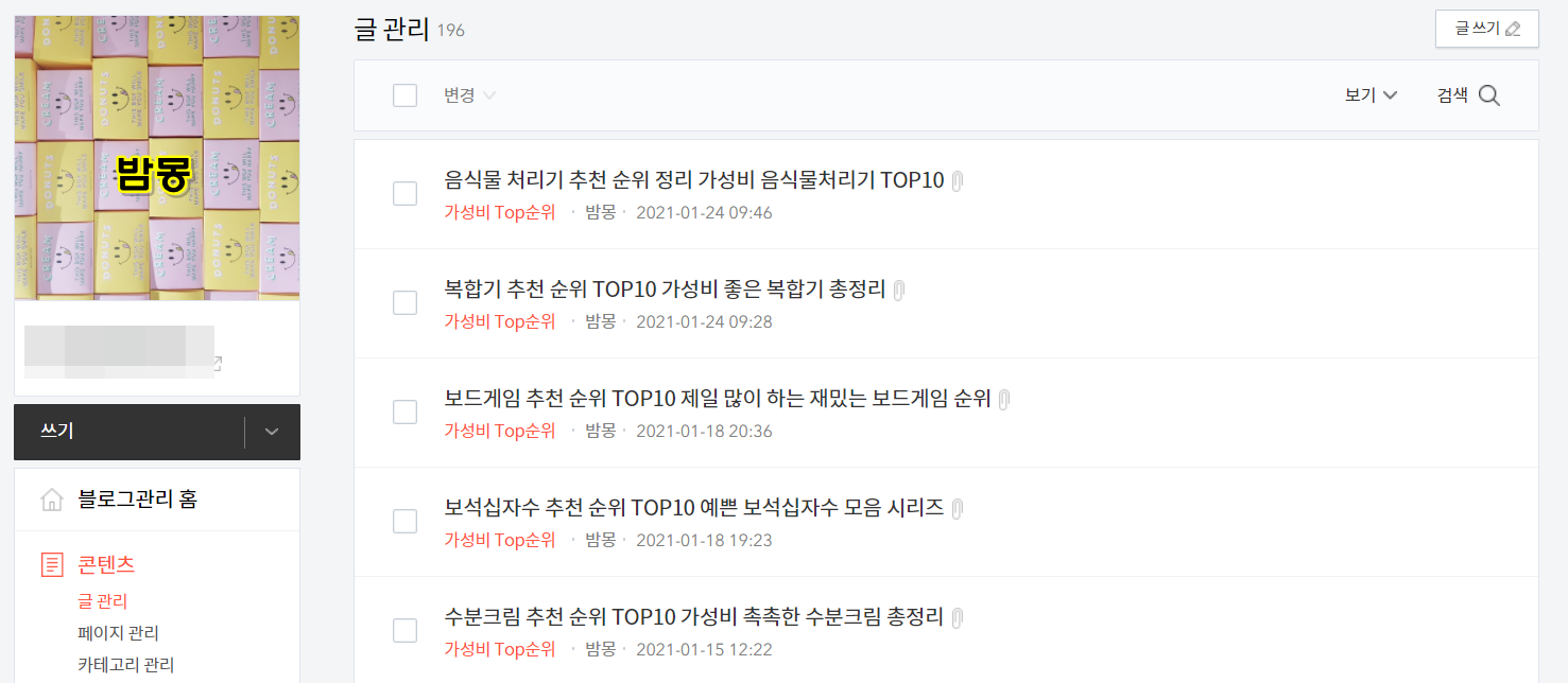 지금 현재는 4개의 블로그를 운영 중이며 이 중 2개의 블로그에서 수익을 내고 있습니다.