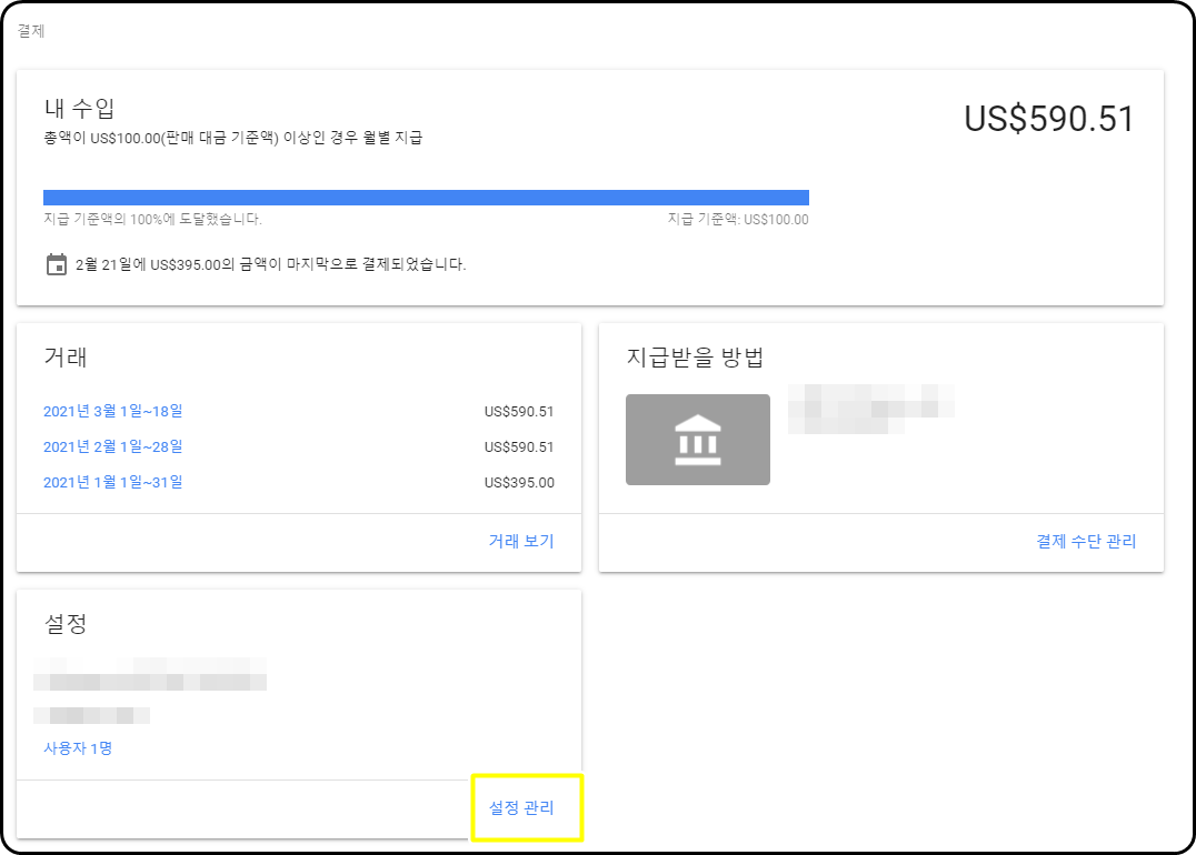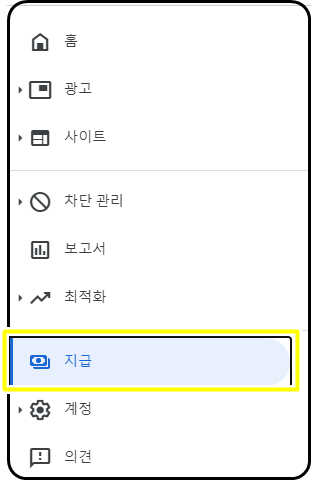 1.애드센스에 접속한 후 좌측 메뉴에서 지급으로 이동