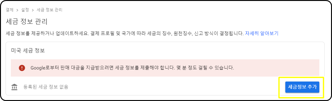 4.세금정보 추가를 클릭