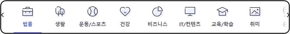 법률부터 생활,운동,건강,비즈니스,운세,재테크 등 12개의 분야가 있음을 볼 수 있습니다.