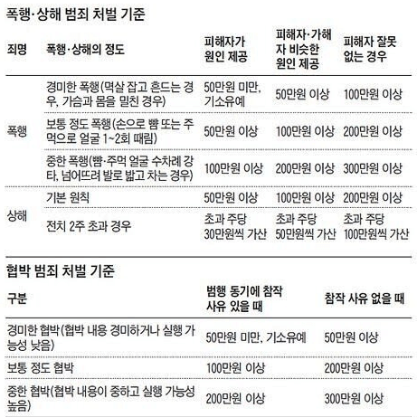 폭행 및 상해 범죄 처벌 기준 형량 정리