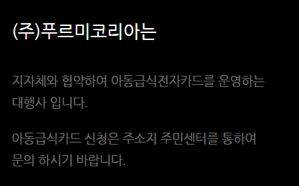 푸르미코리아는 각 지차체와 협약하여 아동급식전자카드를 운영하는 대행사로 생활이 어려운 아이들을 위해 열심히 일하고 있는 회사입니다.