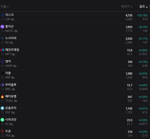 김프 김치프리미엄 역프 및 암호화폐, 비트코인 시세 변동을 실시간으로 제공합니다. 김프 역프 사이트 김프가